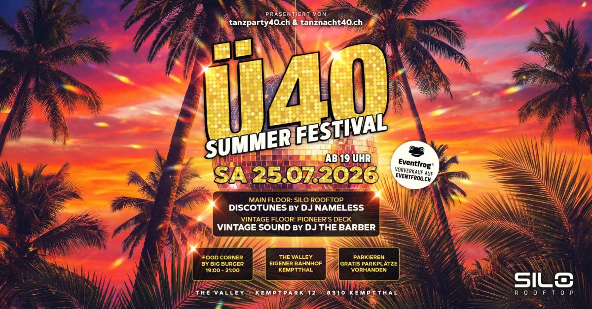 tanzparty40.ch & tanznacht40.ch präsentieren das Ü40 Summer Festival in der einzigartigen SILO Rooftop Location.